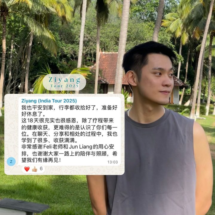 Feli 老师已亲身走访超过 10 个印度阿育吠陀疗愈村,深入体验各地的传统疗程。这次,她特别挑选出疗效最显著、环境最纯净的一家疗愈中心,带领大家亲身体验最正统的 21 天 Panchakarma 排毒疗程。